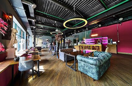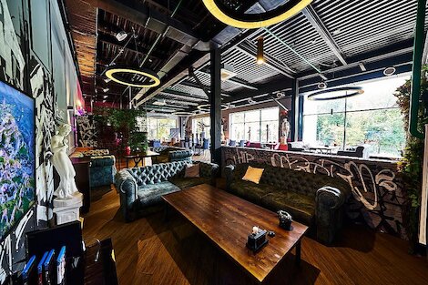- Лаунж-бар с концептуальным дизайном, интересной актуальной едой и бестабачными паровыми коктейлями