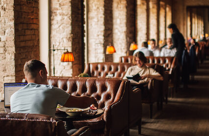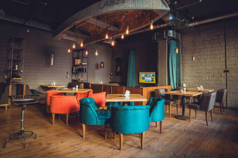 Заведения в стиле лофт обычно характеризуются высокими потолками, открытыми пространствами без перегородок, большими окнами, кирпичными или бетонными стенами и минималистичным декором, создающим индустриальную атмосферу.