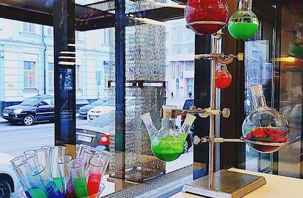 - Коктейльные «элексиры» , беседы и шахматы в антураже старинной аптеки-бара