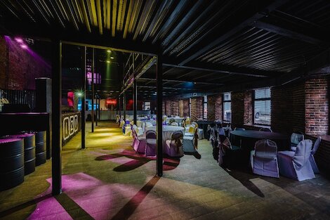 - Неоновый ночной клуб и ресторан с караоке, стриптизом и танцевальными вечеринками до утра