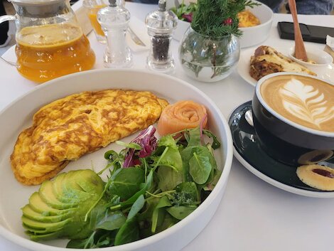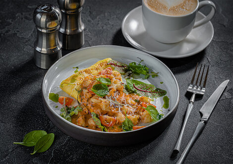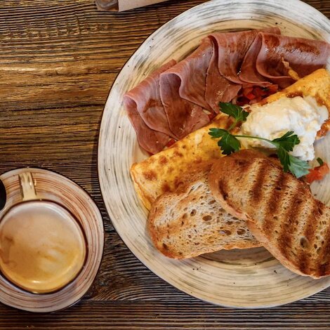 На завтраках часто можно найти омлеты, сырники, каши, свежие круассаны и ароматный кофе, идеально подходящие для утреннего начала дня.