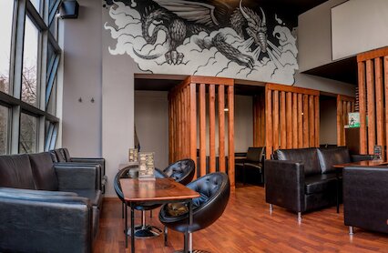 - Лаунж-бар с игровой зоной и спортивными трансляциями