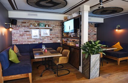- Cпортбар с полсотней сортов пива, квизами и амфитеатром для просмотра трансляций 24/7