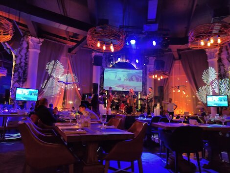 - Тусовочное пространство с пляжем и рестораном с авторскими блюдами
