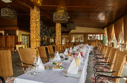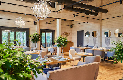 - Атмосферный семейный ресторан на территории банного курорта Veshki Resort