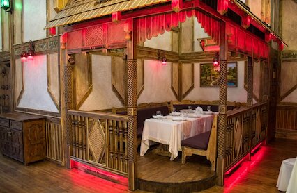 - Масштабный кавказский ресторан с внушительным меню, живой музыкой и банкетными залами