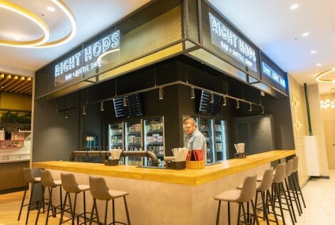 - Корнер-бар с крафтовым пивом на территории фудхолла «Eat Market Орбита»