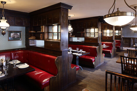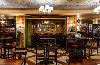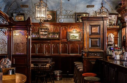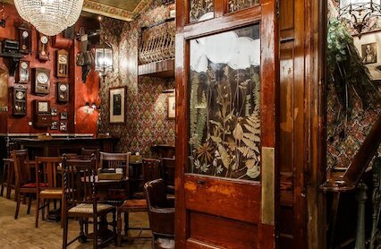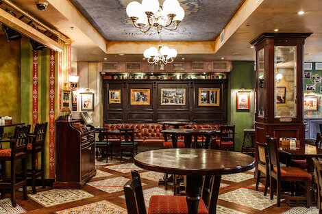 - Ирландский паб-шкатулка в старинном здании с антикварными деталями