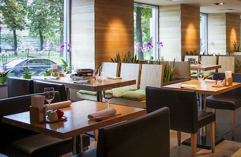 - Ресторан с мясными блюдами из дичи и рыбой из Балтийского моря на территории отеля «Брайтон»
