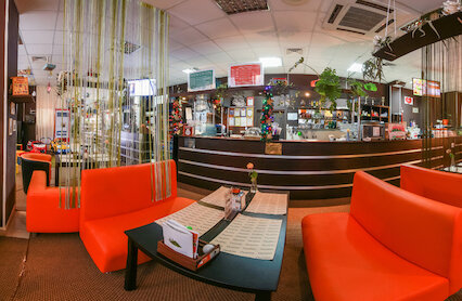 - Атмосферный лаунж с уединенными комнатами, приставками и настольными играми