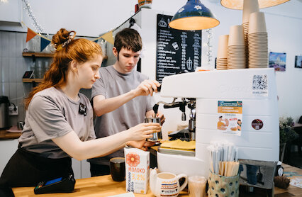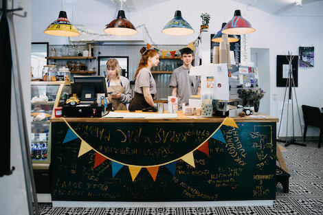- Атмосферная кофейня с веганским меню и кинопоказами на Селезнёвской улице