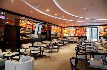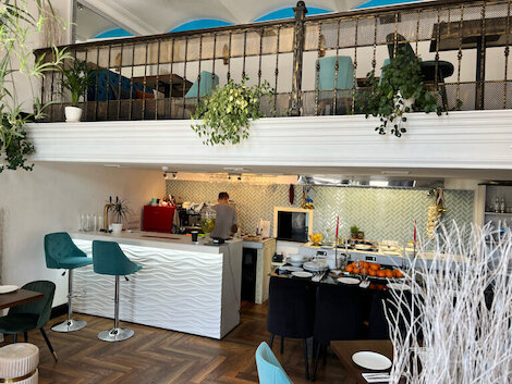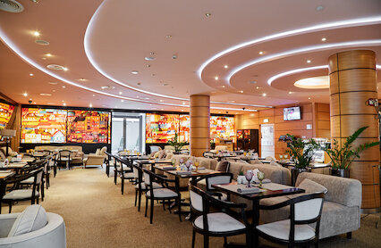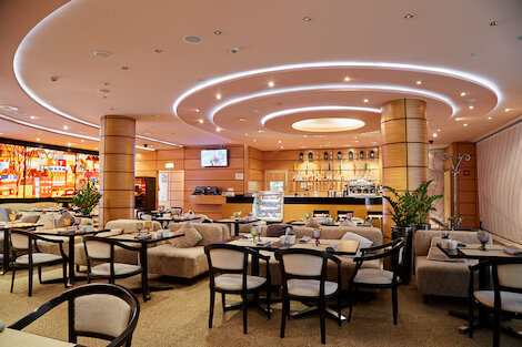 - Просторное кафе с завтраками при отеле Crowne Plaza Moscow