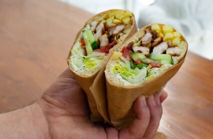 - Корнер с греческим стритфудом в Tishinka Gastro Hall