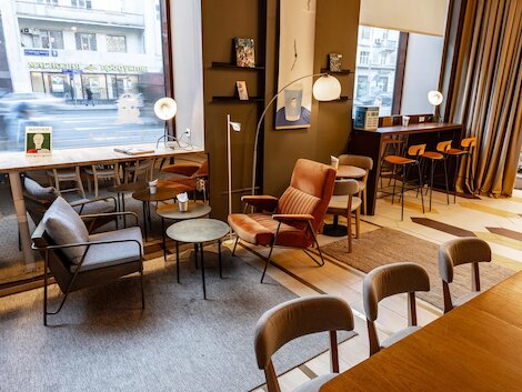 - Стильное бистро с кофе и вином при магазине концептуальной одежды Noconcept