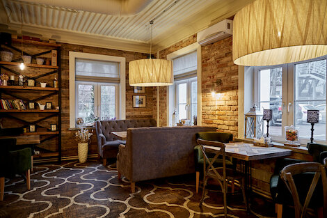 - Семейный ресторан в двухэтажном особняке в стиле шале с комфорт фуд и панорамным видом на городской парк