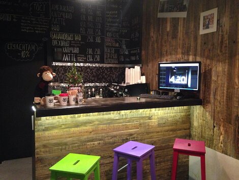 - Сетевая кофейня с космической тематикой, завтраками и авторскими напитками на Ходынской улице