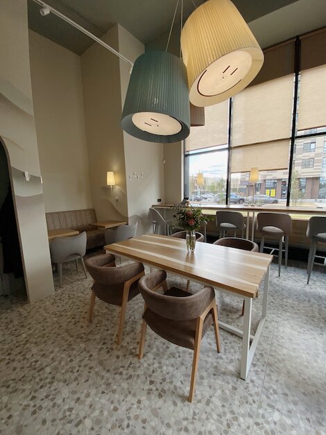 - Минималистичная современная кофейня с необычным кофе и фотогеничными десертами