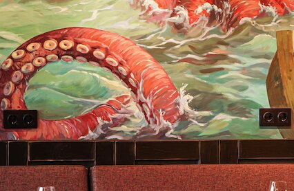 - Яркая креветочная с фотогеничными интерьерами и коктейльной картой на Китай-городе