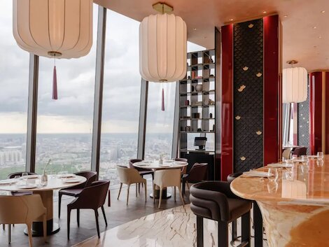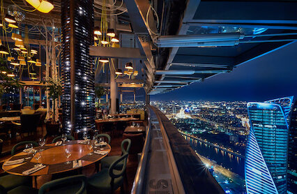 - Ресторан с панорамным видом на 89-м этаже в Москва-Сити- Выставочная