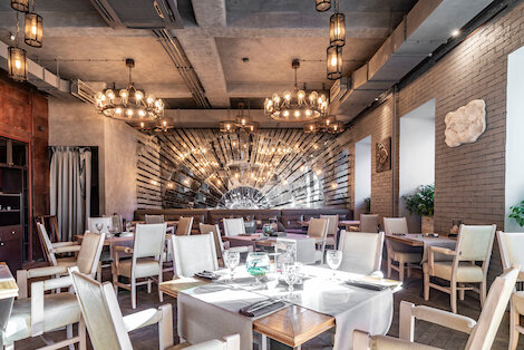 - Элегантно-брутальный стейк-хаус и рыбный ресторан с обширной винной коллекцией