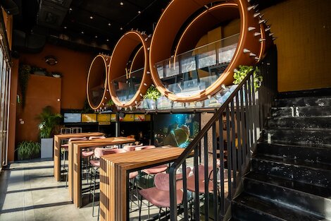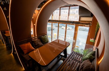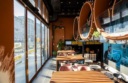 - Яркий сетевой лаунж с дружественной атмосферой, полноценным меню и коктейлями на Тверской