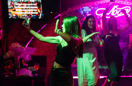 - Молодёжный неоновый бар с шумными вечеринками до утра на Тверской