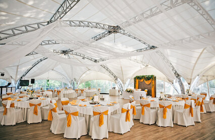 - Масштабная ивент-площадка с несколькими залами, шатром и верандой у Картмазовских прудов