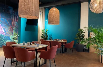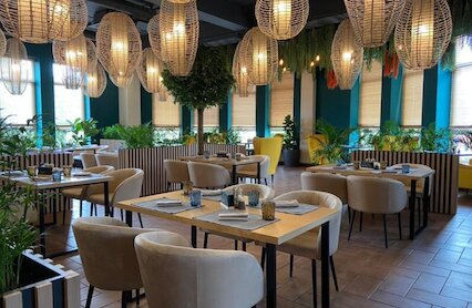 - Ресторан на первом этаже камерного отеля недалеко от Одинцово