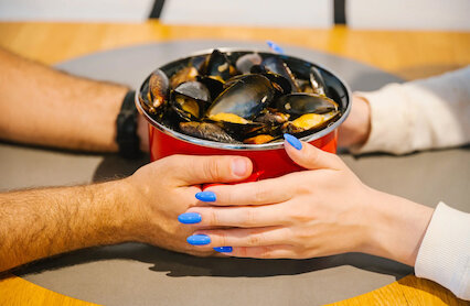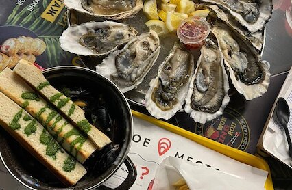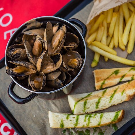 - Корнер с запеченными мидиями на территории фудмолла «Привоз»