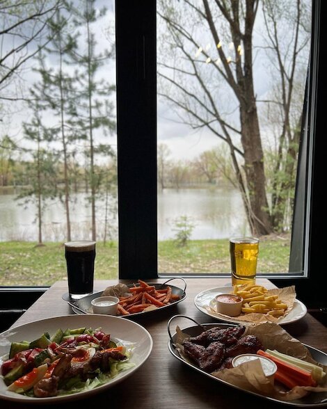 - Гриль-бар с пивом и мясным стритфудом в сосновом бору у пруда с утками