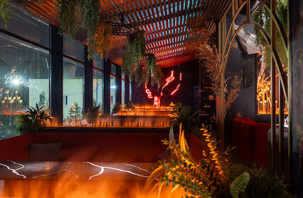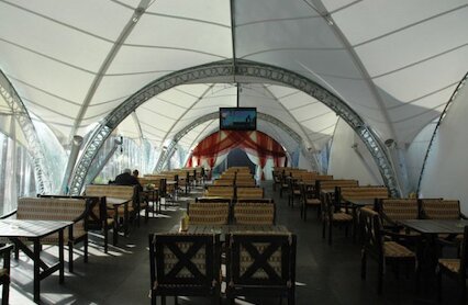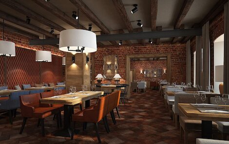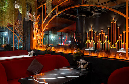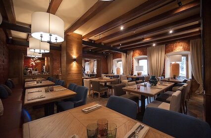 - Уютный ресторан с настоящим камином и просторной террасой с панорамными окнами.