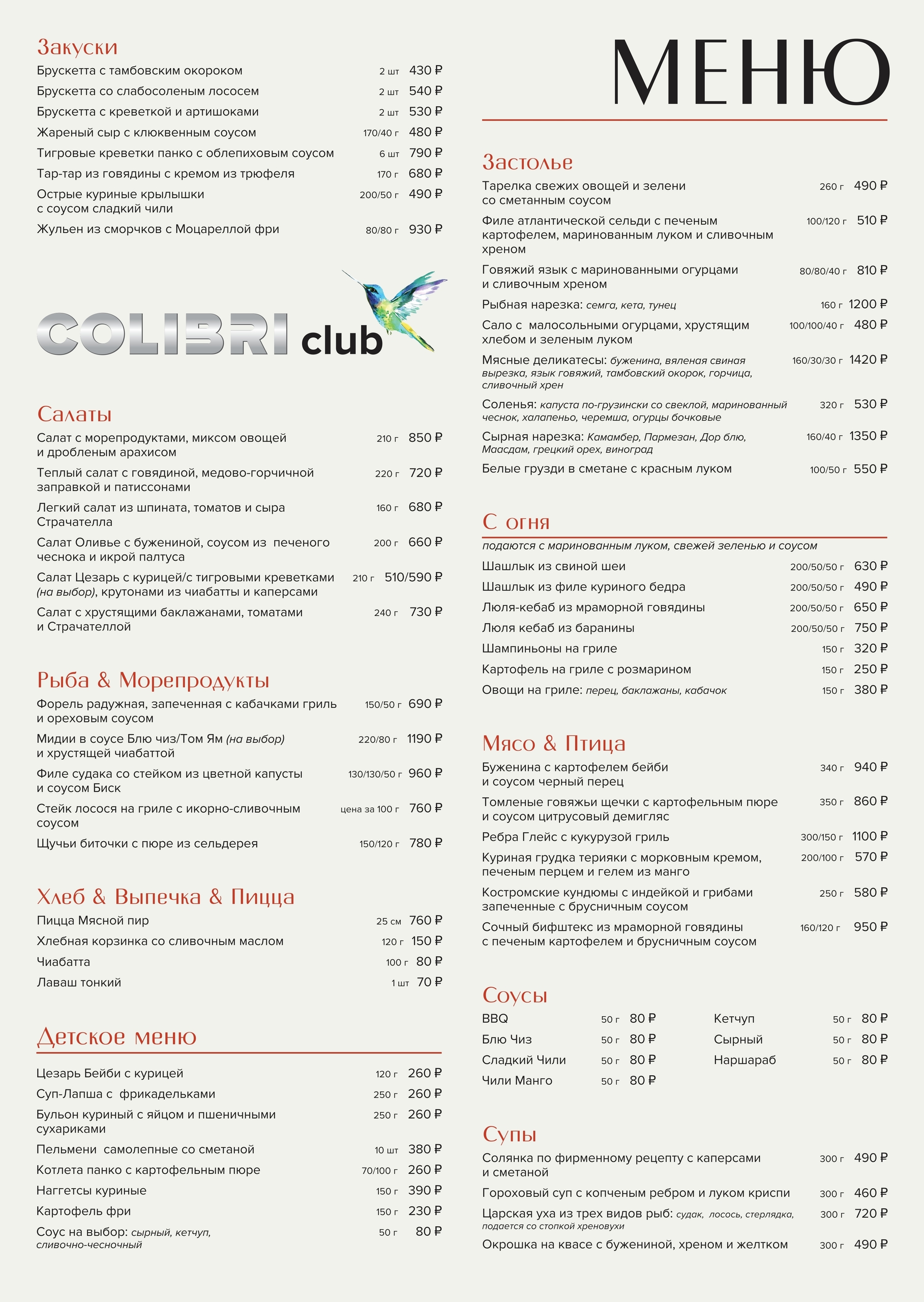 Colibri — ресторан русской кухни, располагающийся на территории живописного Сормовского парка.