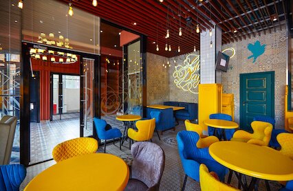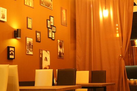 - Демократичное кафе со смешанной кухней и ярким интерьером