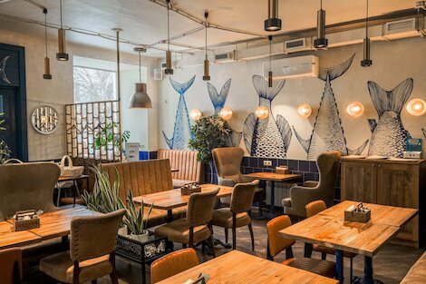 - Ресторан на Рождественской с акцентом на рыбу и морепродукты