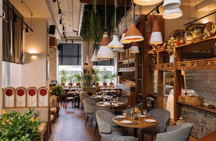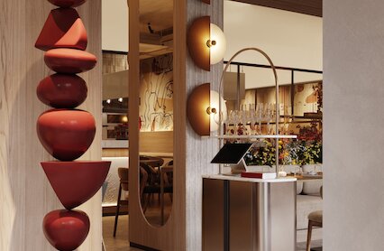 - Стильная кофейня с геометричной деревянной отделкой и завтраками