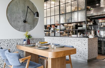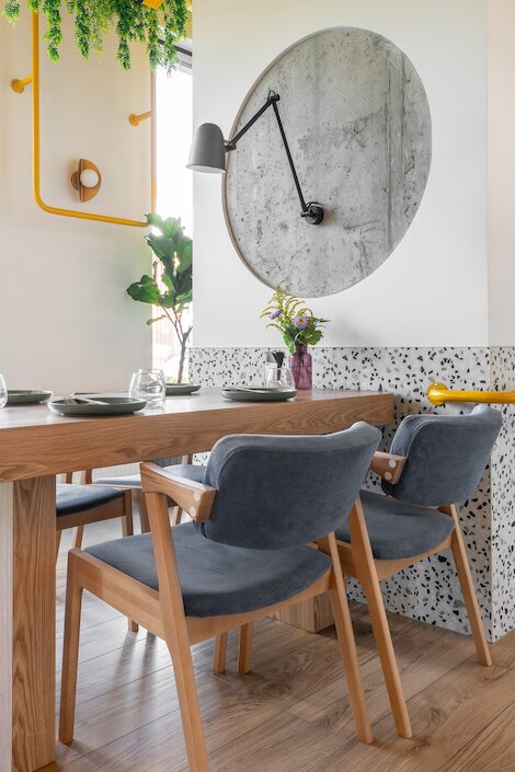 - Светлый ресторан с акцентом на морепродукты