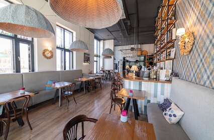 - Ресторан европейской кухни на территории отеля Doubletree by Hilton на Каменской улице