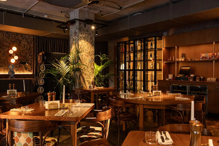 Интерьер отвечает общему вайбу: тёплая гамма — песок, беж, терракота — работает, как солнечный фильтр. Растения и акцентный зелёный добавляют прохлады. Светильники, напоминающие дольки лимонов и апельсинов, дразнят, а стены с росписью цветов и пальм добивают эффект. В какой-то момент перестаёшь понимать, то ли ты на Добролюбова, то ли в Сорренто. Хочется просто крикнуть: «Синьор! Несите всё!»