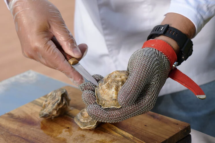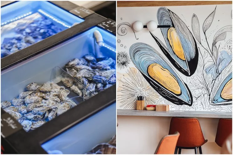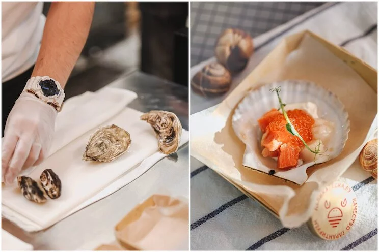 Бренд готовит собственных экайе — мастеров по вскрытию устриц и работе с живыми морепродуктами. Они проходят обучение, оттачивают скорость и технику, сдают экзамены и расскажут вам всё — о регионах, сортах и особенностях каждой позиции. Смотреть, как экайе ловко открывают устрицу и тут же подают — отдельное удовольствие.