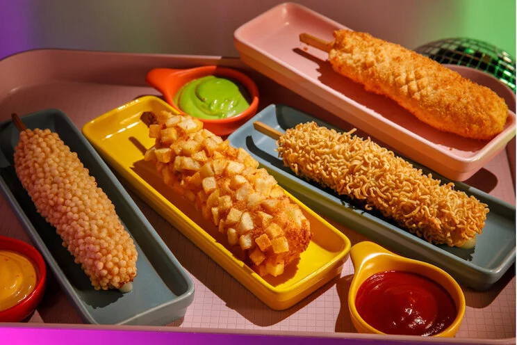 корндоги с сыром, курицей и сосиской в панировке на выбор