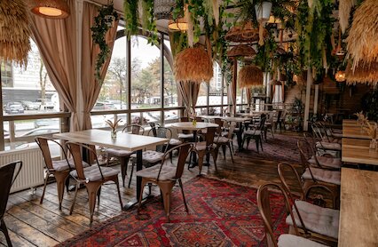 - Ресторан восточной кухни с традиционными блюдами и светлым интерьером