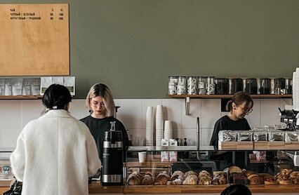 - Кафе-кондитерская с популярными булочками на первом этаже ТЦ «Горизонт»