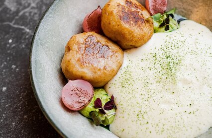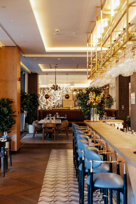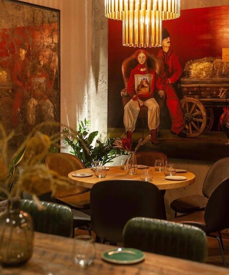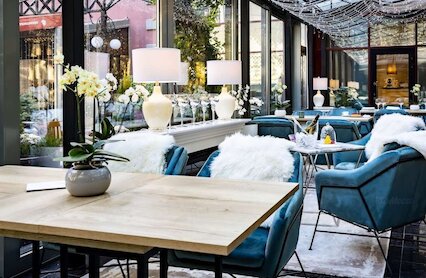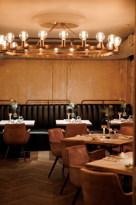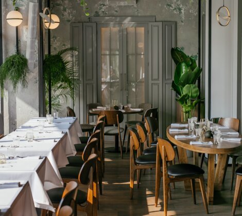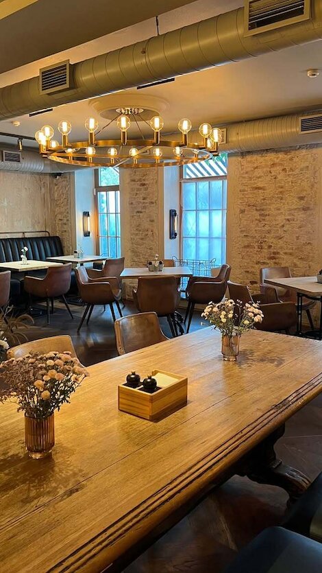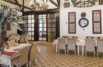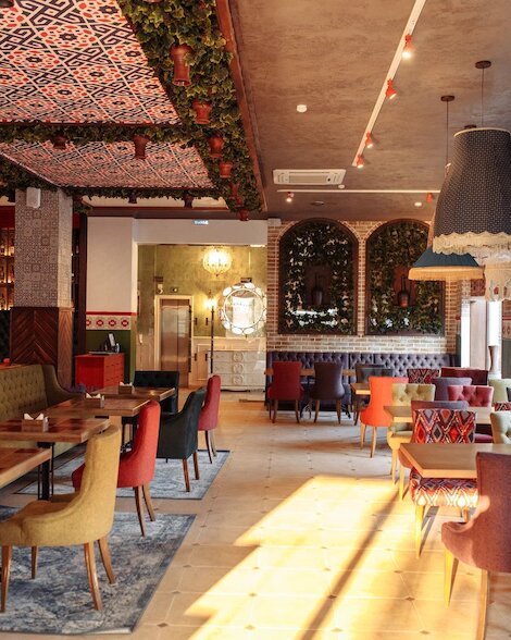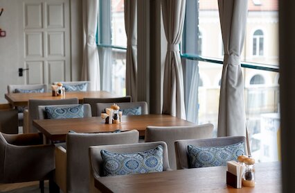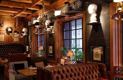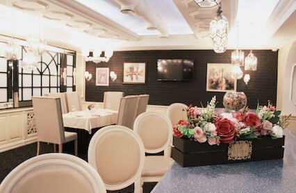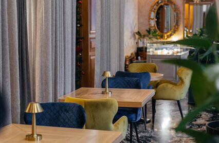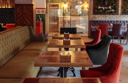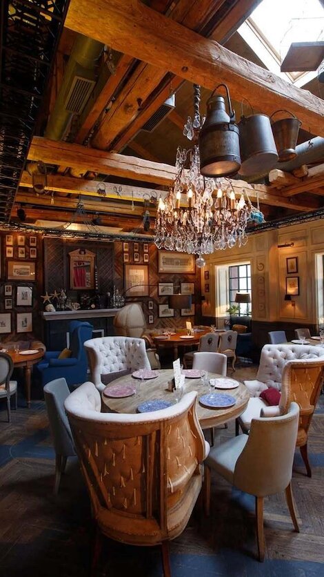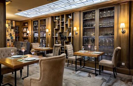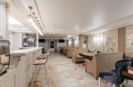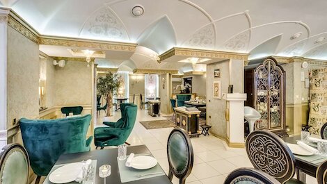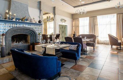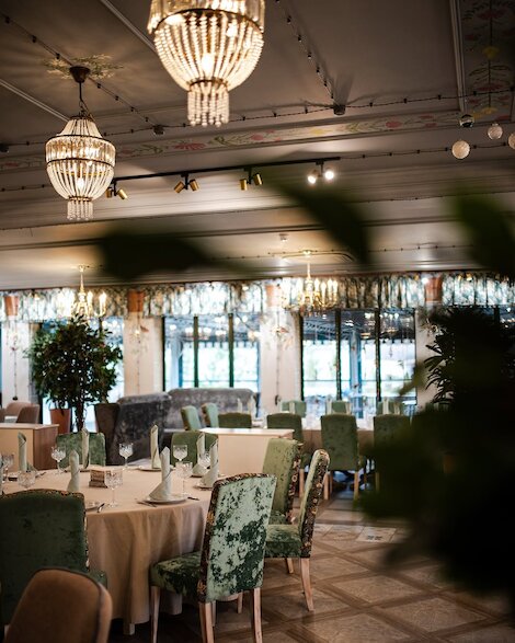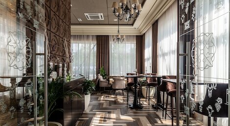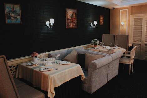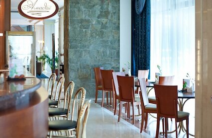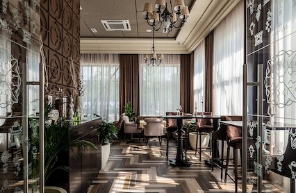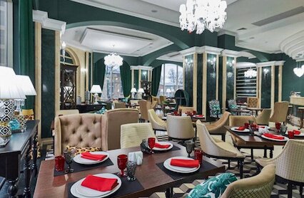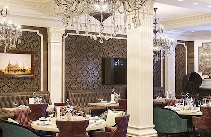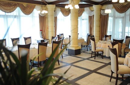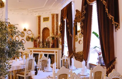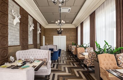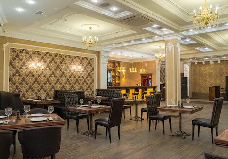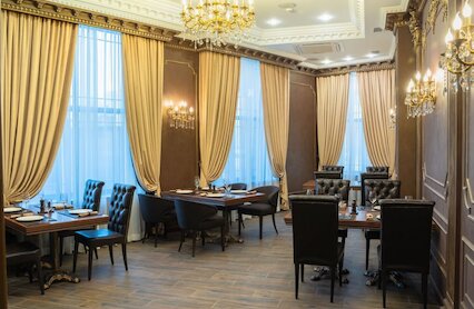 - Ресторан при одноимённом отеле и банкетные залы в классическом стиле