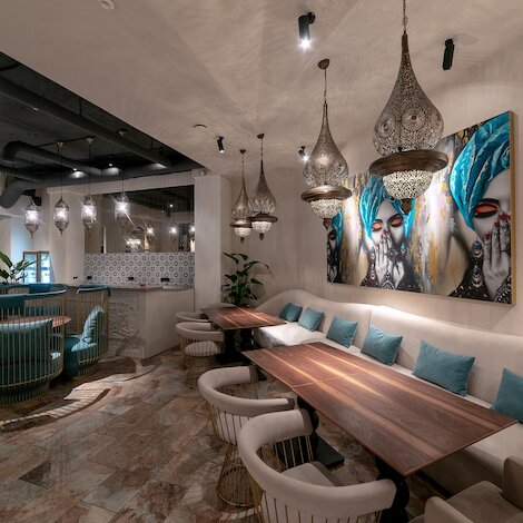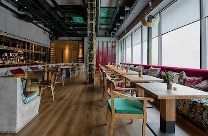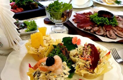 - Ресторан с разными кухнями мира и семь банкетных залов для любых мероприятий