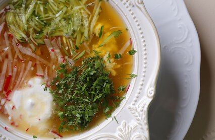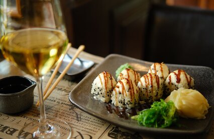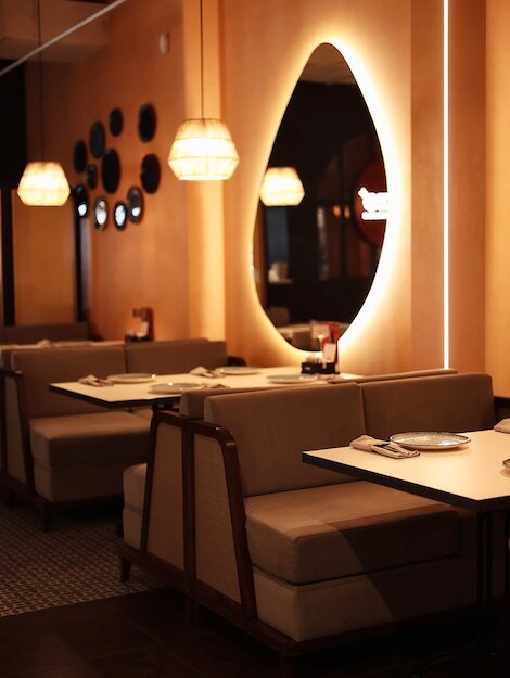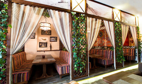 - Ресторан восточной кухни с традиционными блюдами и светлым интерьером
