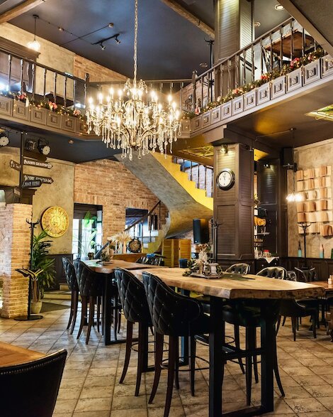 - Двухэтажный мясной ресторан с авторской кухней и живой музыкой