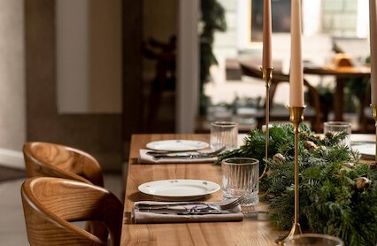 - Ресторан при одноимённом отеле и банкетные залы в классическом стиле