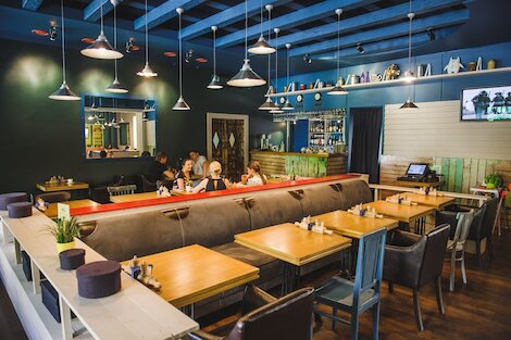 - Сетевое кафе грузинской кухни на Красноармейской улице с домашним интерьером