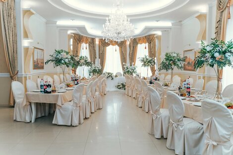 - Светлый банкетный зал в классическом стиле при отеле «Самара»