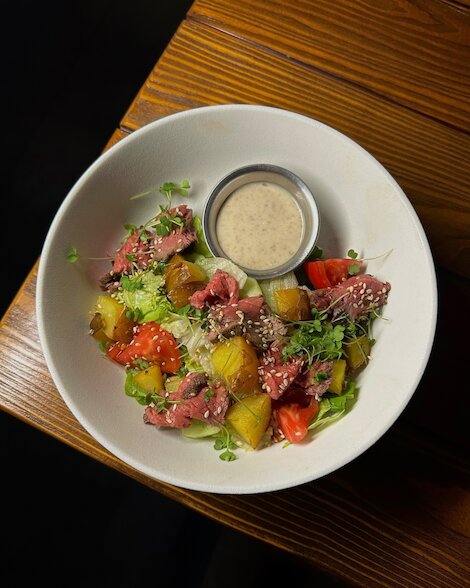 - Брутальный гриль-бар с широким меню и содержательной барной картой